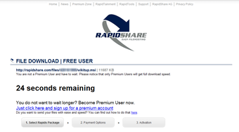 La inscripción en RapidShare es gratuita, aunque no obligatoria, y permite una mejor gestión de los archivos a compartir. Así y todo, muchos de los servicios ofrecidos sólo están disponibles previa compra de Rapids, una suerte de créditos con los que ampliar el espacio disponible o el ancho de banda.
