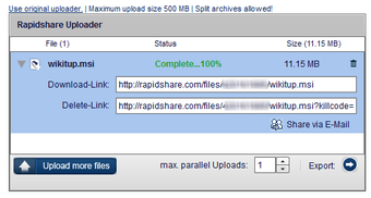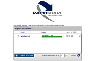 La subida de archivos en RapidShare es un proceso sencillo: elige el archivo y confirma la operación; el límite es de 500 megabytes. Más cómodo es el gestor de subida múltiple hecho en Flash, con una interfaz más pulida y barras de progreso.
